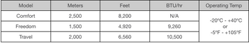 Each Cinderella model has specific environmental constraints, maintenance and installation requirements, which are detailed in the manual and visualized in the chart below. Please be aware that any installation outside of Cinderella's stipulated requirements will void the warranty.